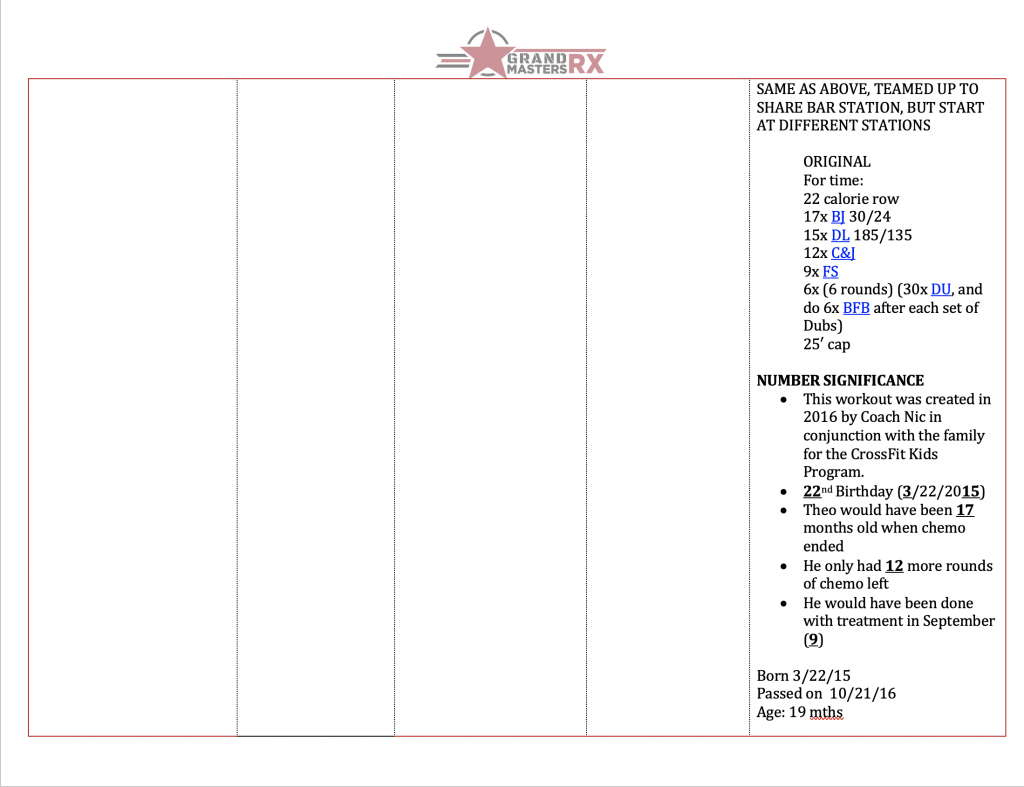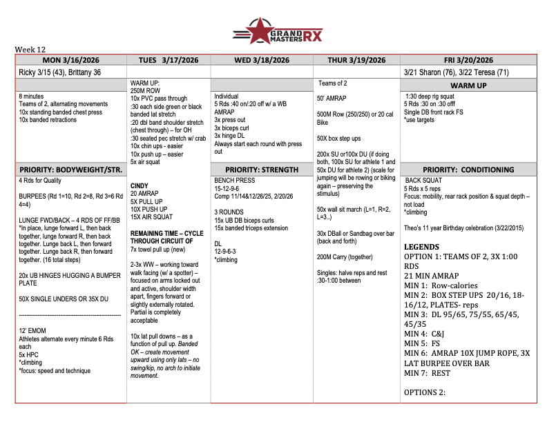 Workouts for week of March 16th